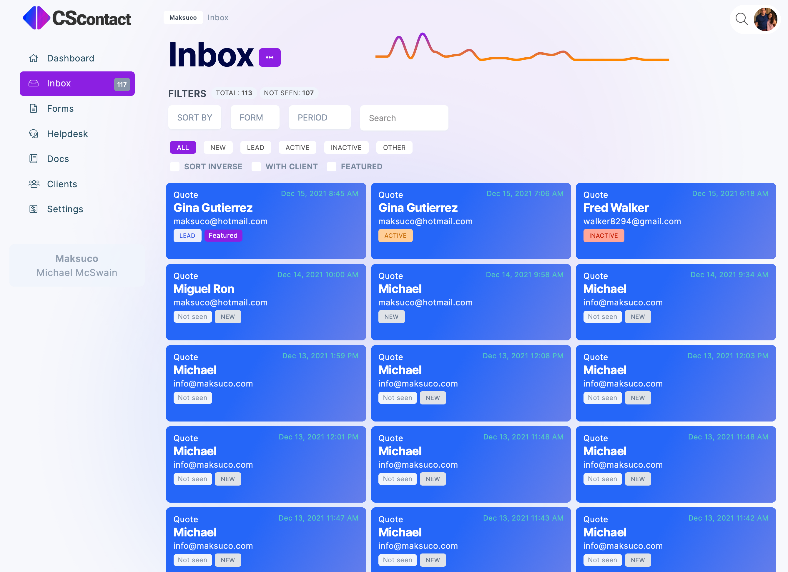 Organize leads by tagging with labels and status, search for old leads and turn possible clients into contacts.